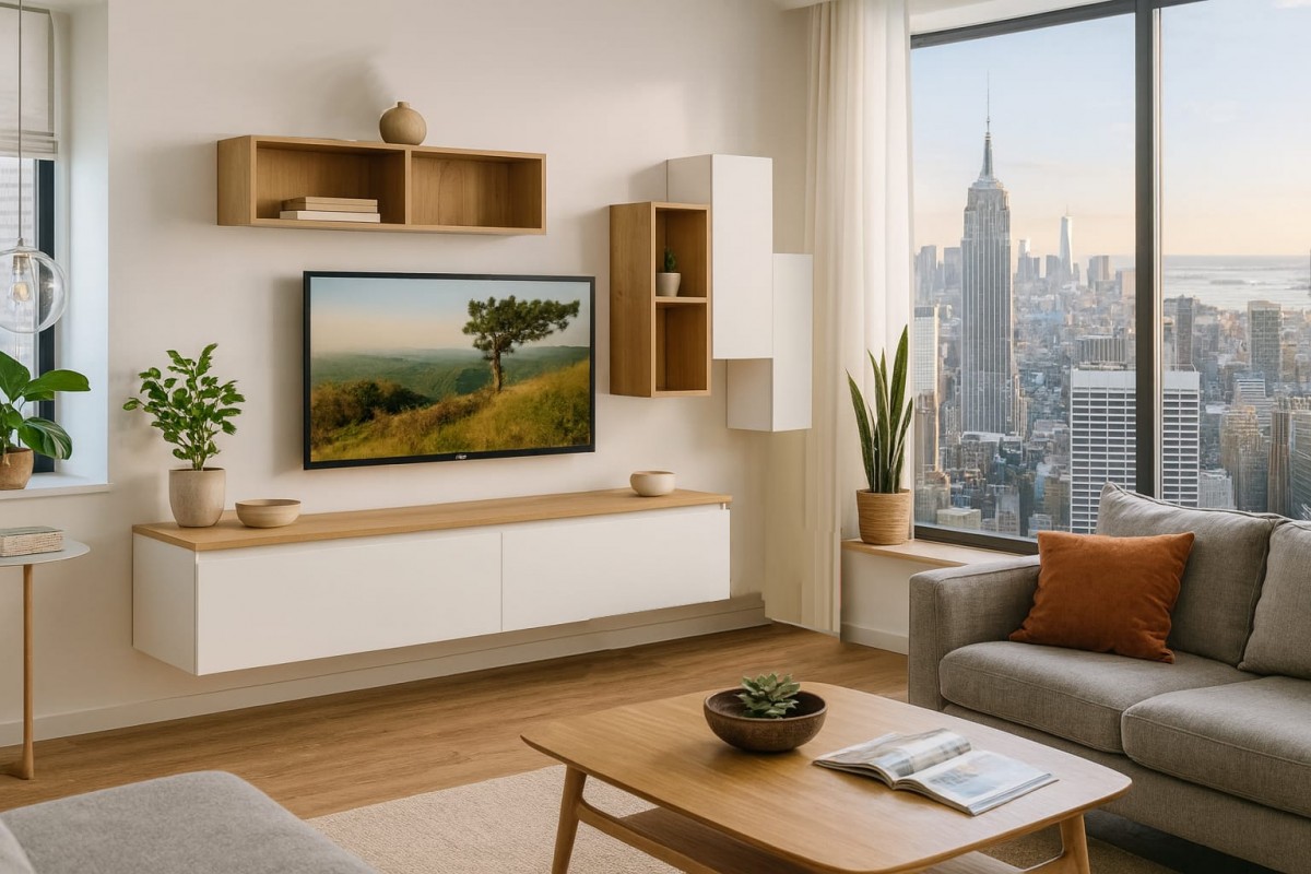 Finiture attuali, moduli funzionali e un equilibrio perfetto tra estetica e praticità, ideale per un soggiorno accogliente e ben organizzato.