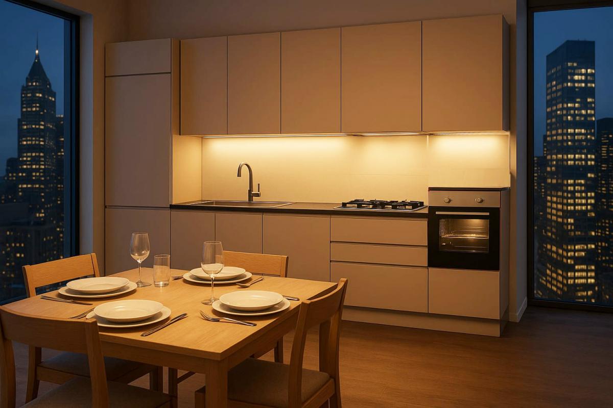 La cucina modello Tablet comprende anche tutti gli accessori: Miscelatore, portaposate, pattumiera differenziata, filtri a carbone, luce a led ad accensione con sfioramento anche con mani bagnate.