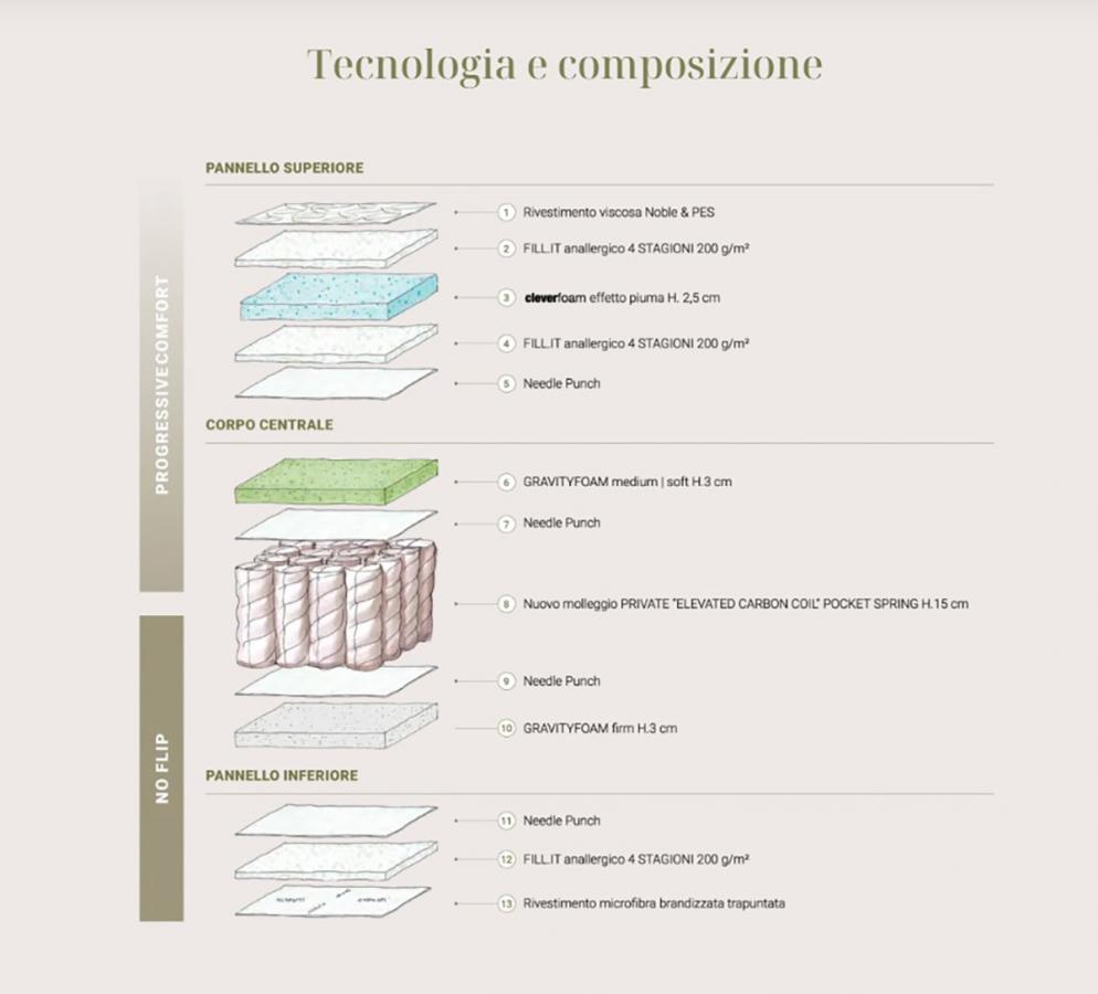 Il materasso e' disponibile H=26 oppure H=31 con supplemento e con 2 possibilita' di scelta nella rigidita'